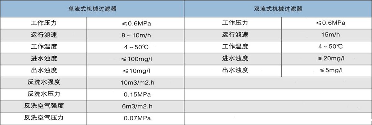 机械过滤广泛用于水处理过程中,主要用于给水处理除浊,反渗透、以及离子交换软化除盐系统的前级预处理,也可用于地表水、地下水除泥沙。进水浊度要求小于20度,出水浊度可达3度以下。